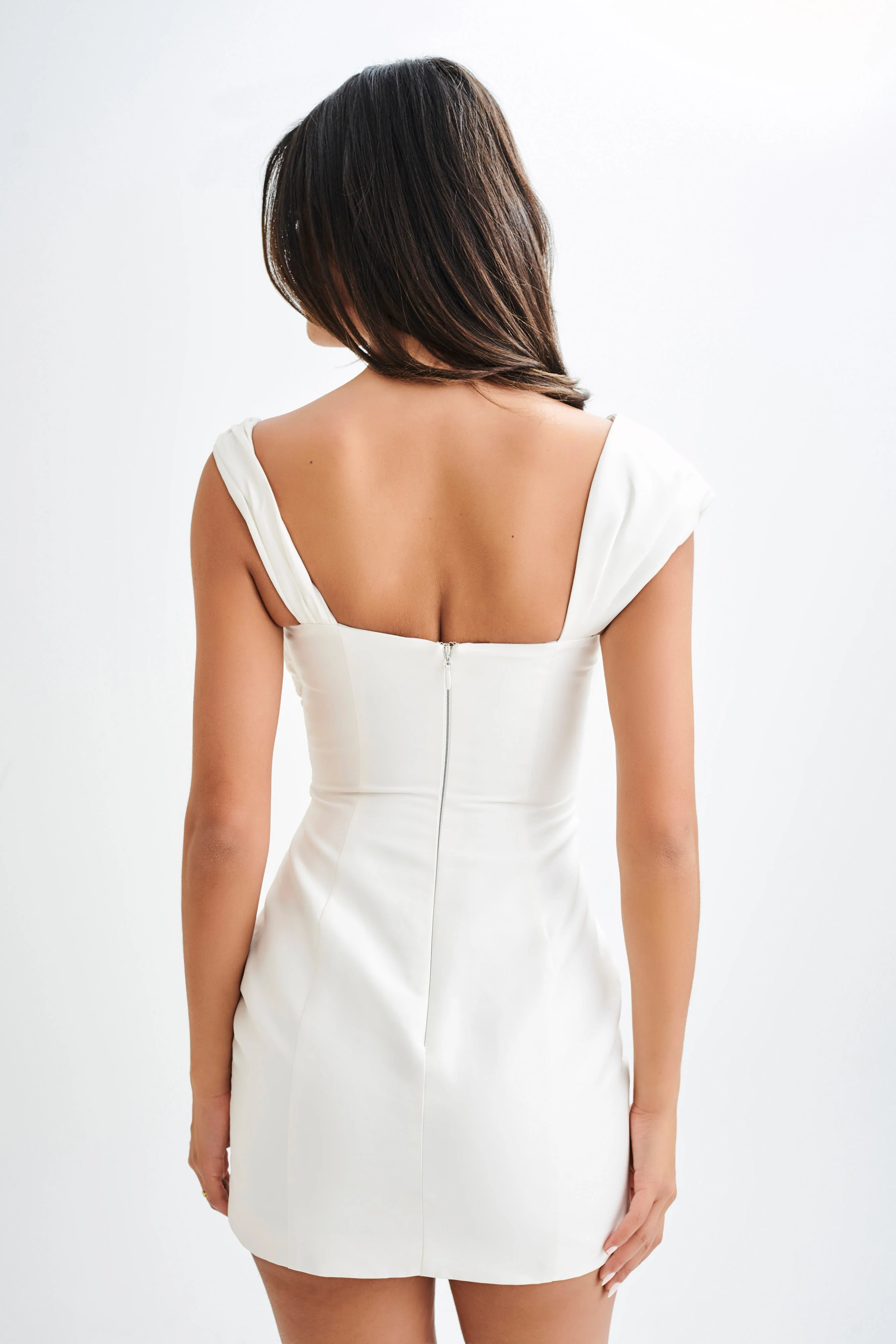 Farrah Structured Draped Mini Dress - White
